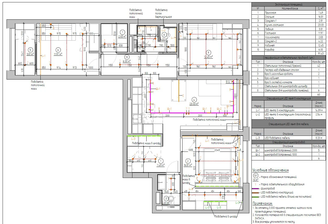 Работаем с любыми готовыми проектами: дизайн-проектами с визуализацией, рабочими чертежами электриков, простыми списками (спецификациями) от архитектора. Главное — чтобы был перечень светильников.